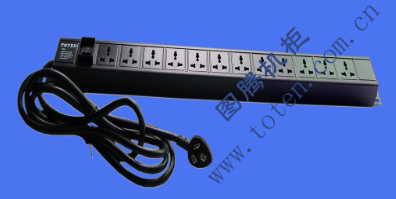 黑色12位国标PDU,10A国标三扁插头输入,10A万用插座输出,带总开关,线长3M,反方向安装