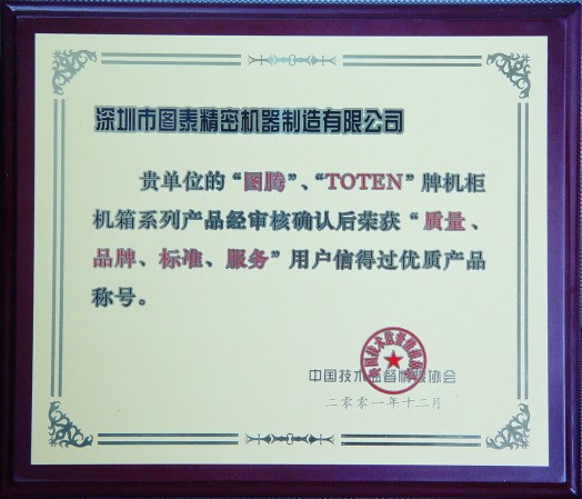 图腾机柜被中国技术监督协会确认为优质产品